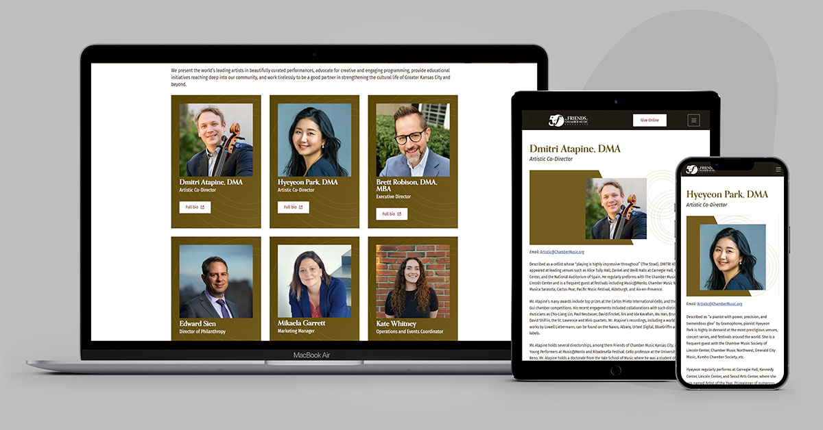 The Friends of Chamber Music Kansas City (FCM) is renowned for bringing the world’s finest chamber musicians to the heart of the Midwest. To honor their legacy of excellence, the organization required a digital presence that mirrored the sophistication and intimacy of a live chamber performance. Our team designed a modern, high-performance website that serves as a premier gateway for classical music enthusiasts to discover upcoming concerts and engage with the organization’s rich history.
